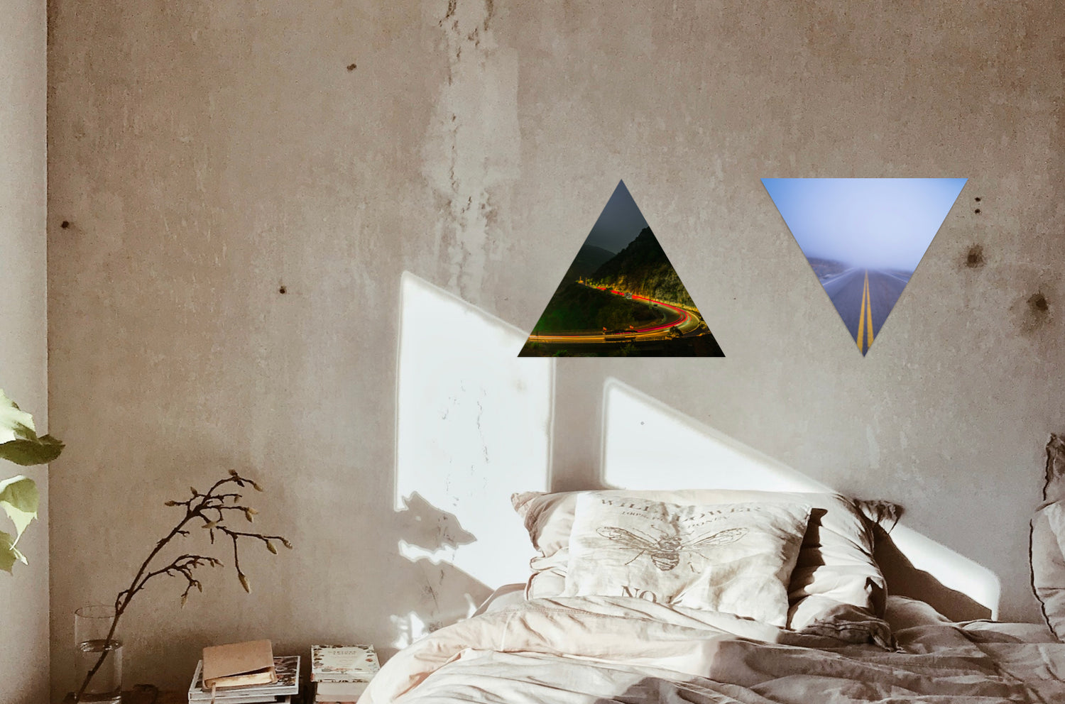 Triangular aluminum prints give way for winding roads.